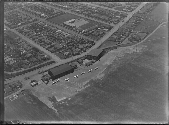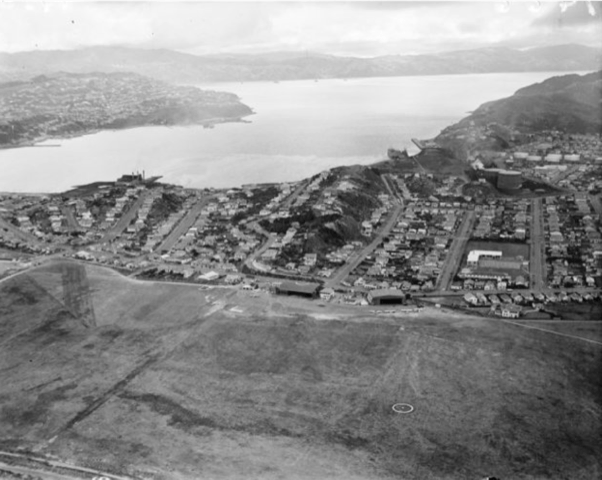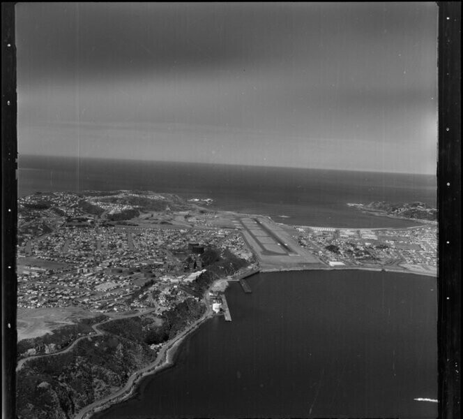 Miramar, including Wellington Airport in the background. Whites Aviation Ltd: Photographs. Ref: WA-68355-F. Alexander Turnbull Library, Wellington, New Zealand. /records/22895689