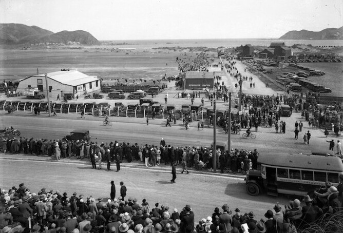 Opening pageant at Wellington Airport in 1929, Rongotai. Evening post (Newspaper. 1865-2002) :Photographic negatives and prints of the Evening Post newspaper. Ref: EP-0762-1/2-G. Alexander Turnbull Library, Wellington, New Zealand. /records/23082903