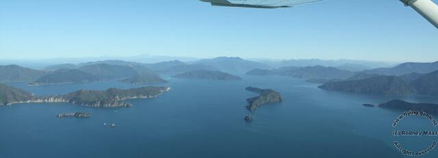 Marlborough Sounds, looking south with Long Island in the centre.